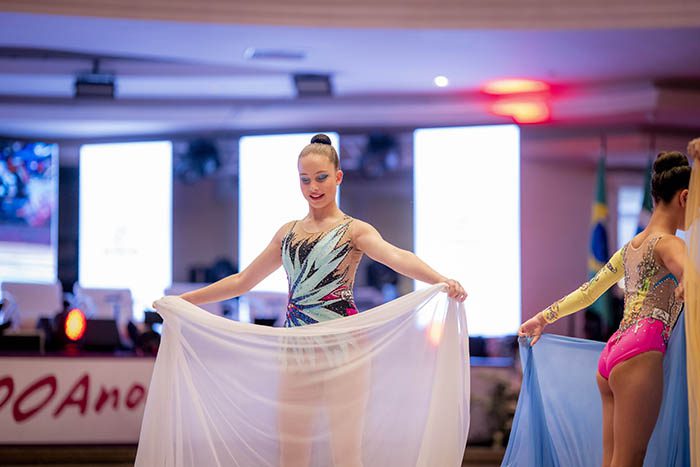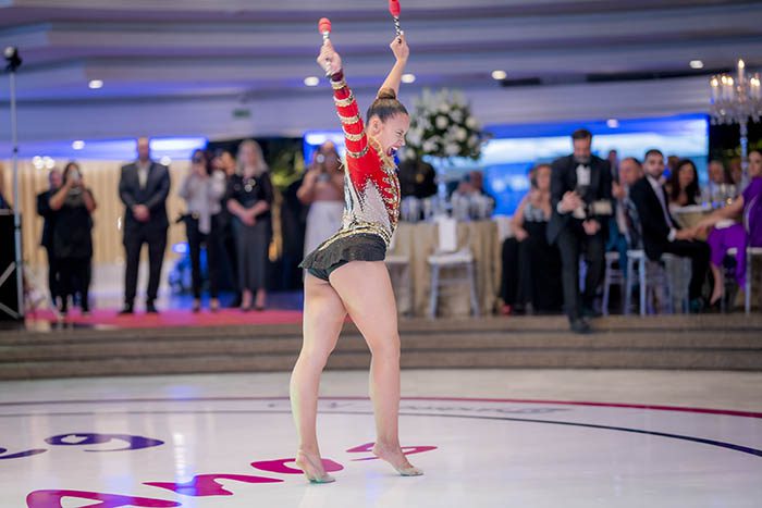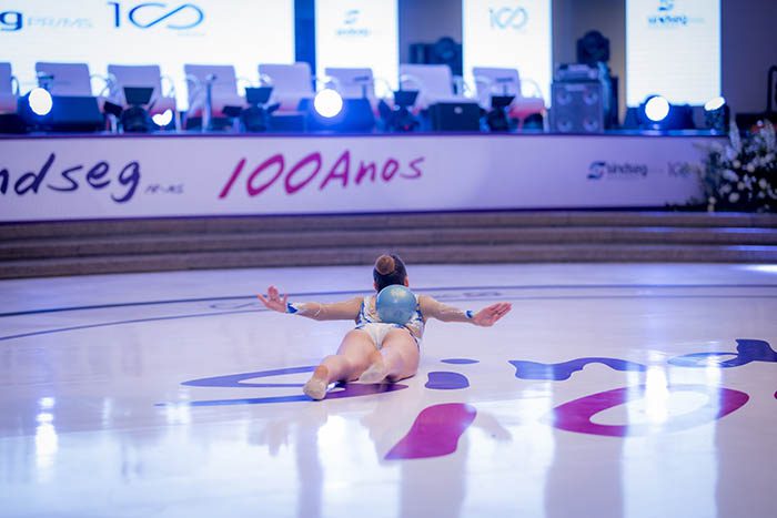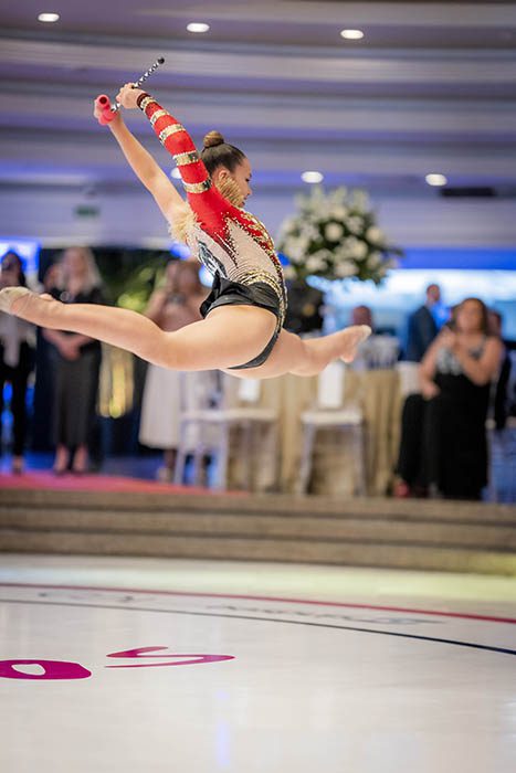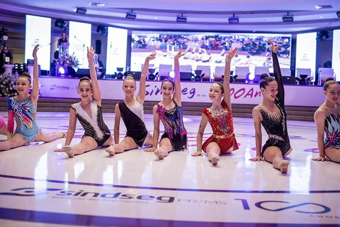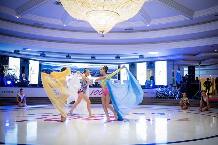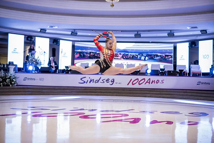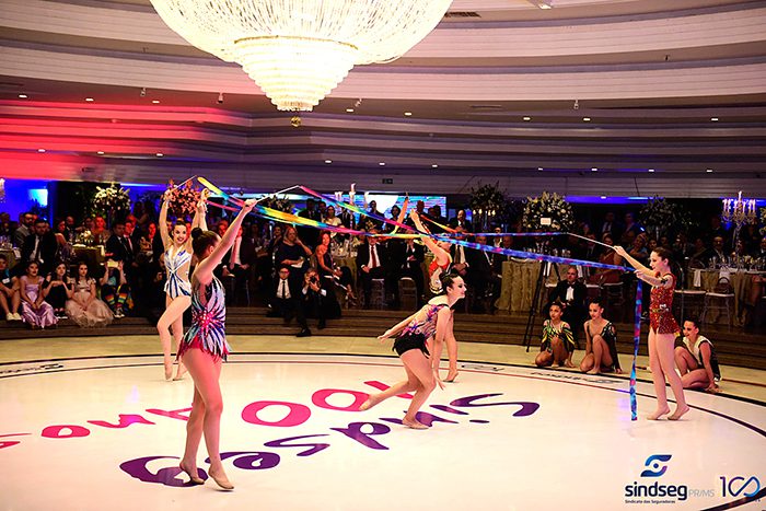 Fotos da apresentação das ginastas no evento em comemoração aos 100 anos do Sindseg PR/MS, no Clube Curitibano, em Curitiba/PR.